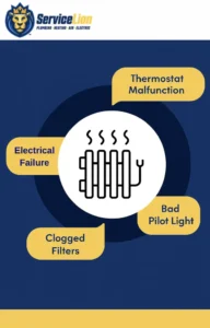 - Electrical issues, thermostat malfunctions, and component damage are the most common causes of heating problems.